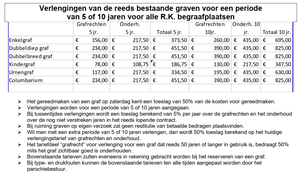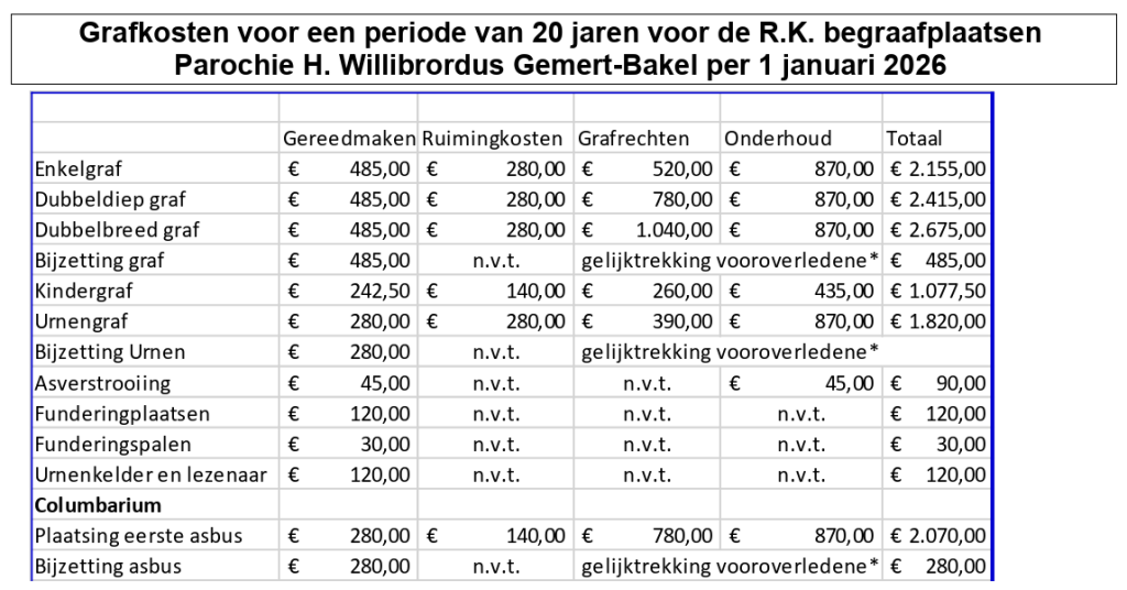 Tarievenlijst parochie H. Willibrordus Gemert-Bakel