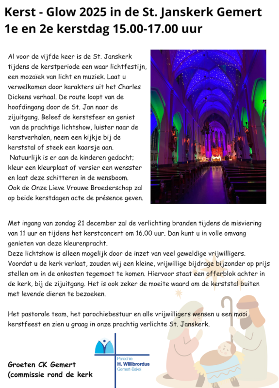 Buiten de vieringen is de kerk op Eerste en Tweede Kerstdag open: Gemert: 15.00-17.00 uur Handel: 8.30-19.00 uur Bakel: 9.00-12.30... lees meer >
