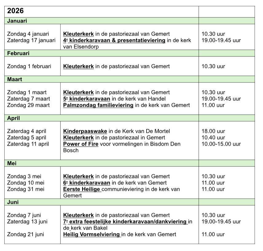 Kleuterkerk is er iedere 1e zondag van de maand om 10.30 uur in de zaal van de pastorie bij de St. Jan.